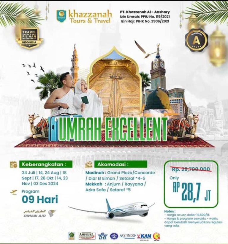 Khazzanah Tour resmi dan terdaftar di KEMENAG RI dan telah berdiri sejak tahun 2001