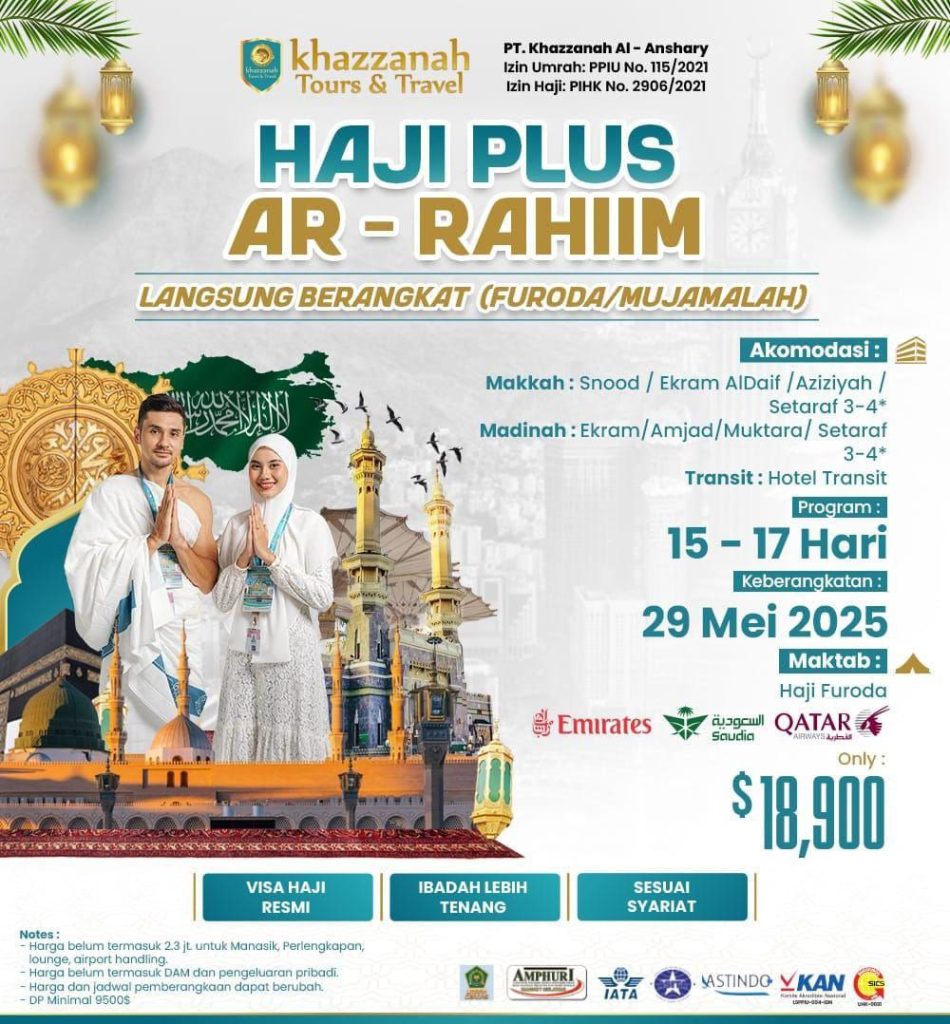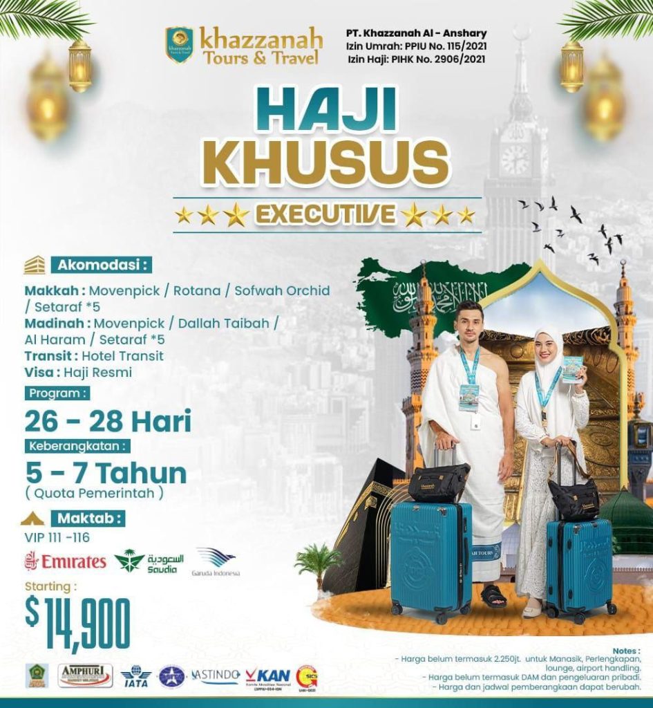 Merupakan program Ibadah Haji khusus tanpa antri dan bergaransi uang kembali jika visa tidak keluar. Kami memberikan kemudahan bagi para jamaah untuk melaksanakan ibadah haji pada musim haji yang akan berlangsung dengan bimbingan ibadah dan pelayanan terbaik.